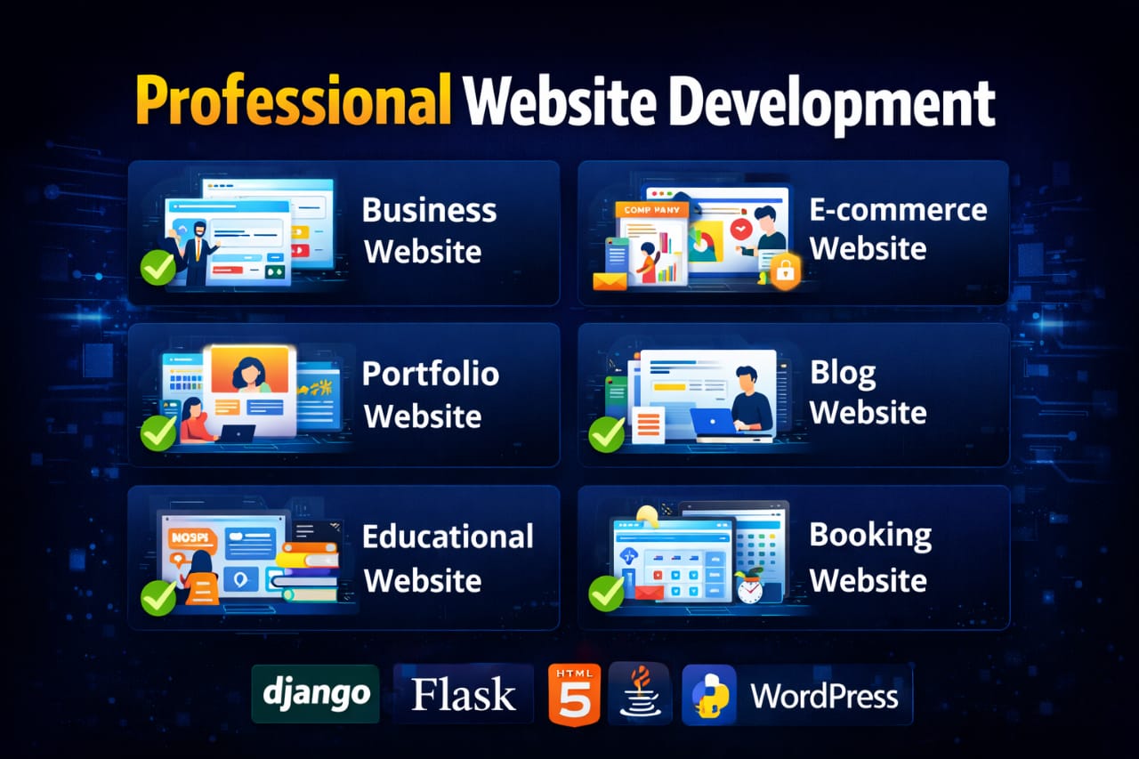 Hello! I am a Custom Website Developer who builds modern, responsive, and user-friendly websites. I create business websites, landing pages, and custom web solutions based on client needs. My focus is clean code, fast performance, and professional design. I always deliver quality work on time and maintain clear communication with clients.