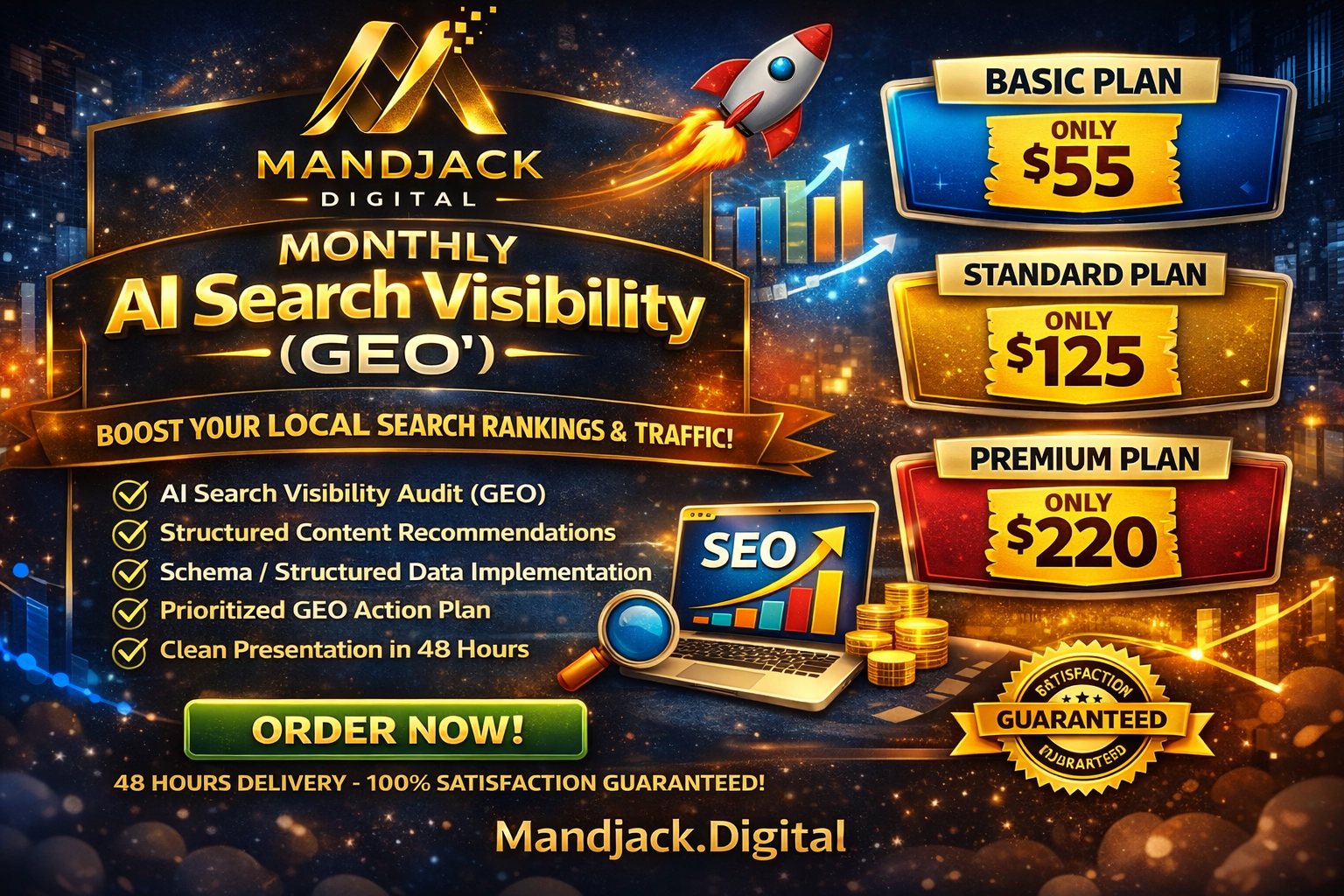 Mandjack Digital agency helps ecommerce & local services grow revenue with websites and landing pages built for conversion. You can also hire me for SEO audits (48h) and social media strategy delivered with a 30-day action plan. Give me a reference website and I will design yours better! Share your website, offer, target ROAS and I’ll send 3 quick wins.