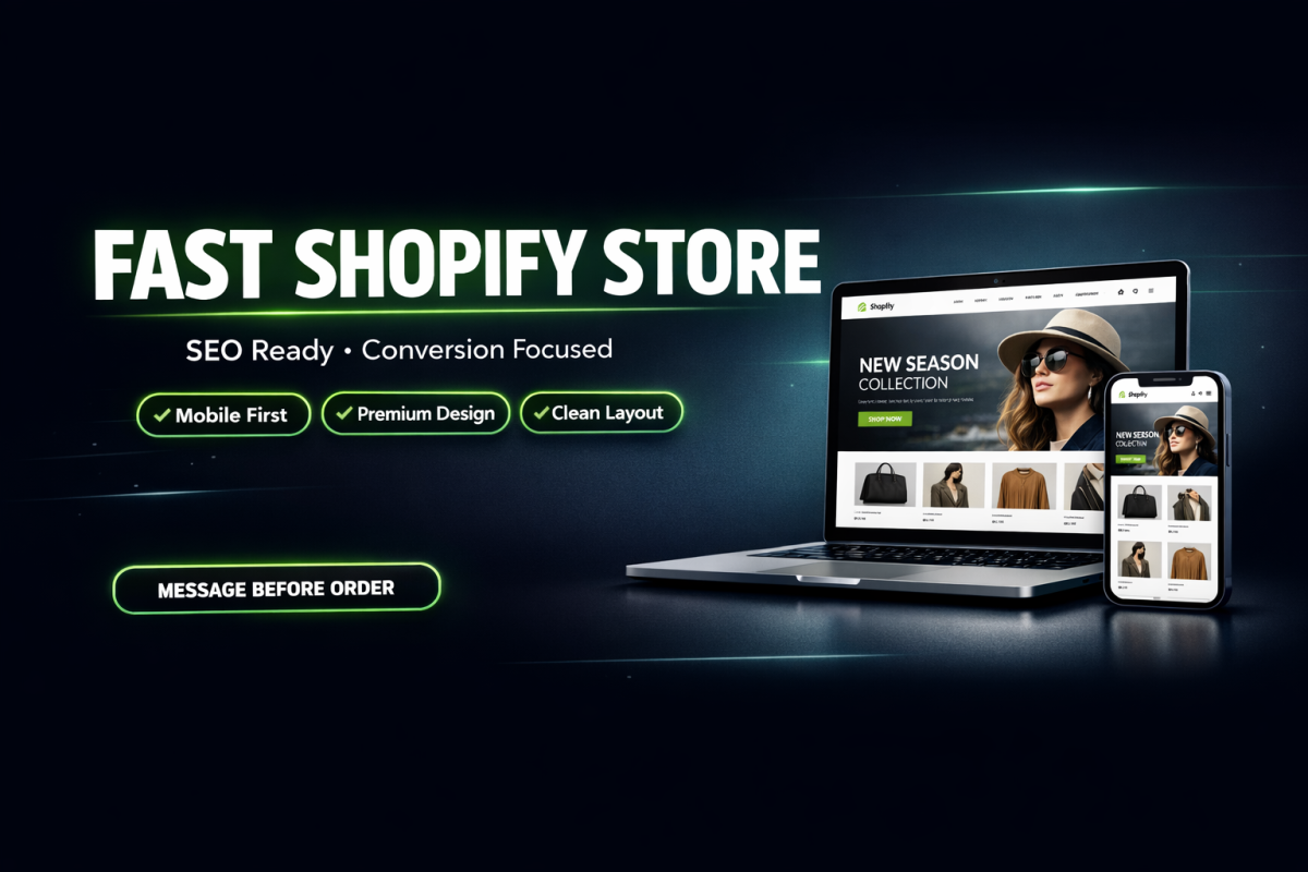 Hi, I’m a Shopify website designer & developer. I build modern, fast, mobile-friendly Shopify stores that look premium and convert visitors into customers. I can help with store setup, theme customization, homepage/product pages, essential apps setup, and basic SEO. Clear communication, clean work, and on-time delivery.
