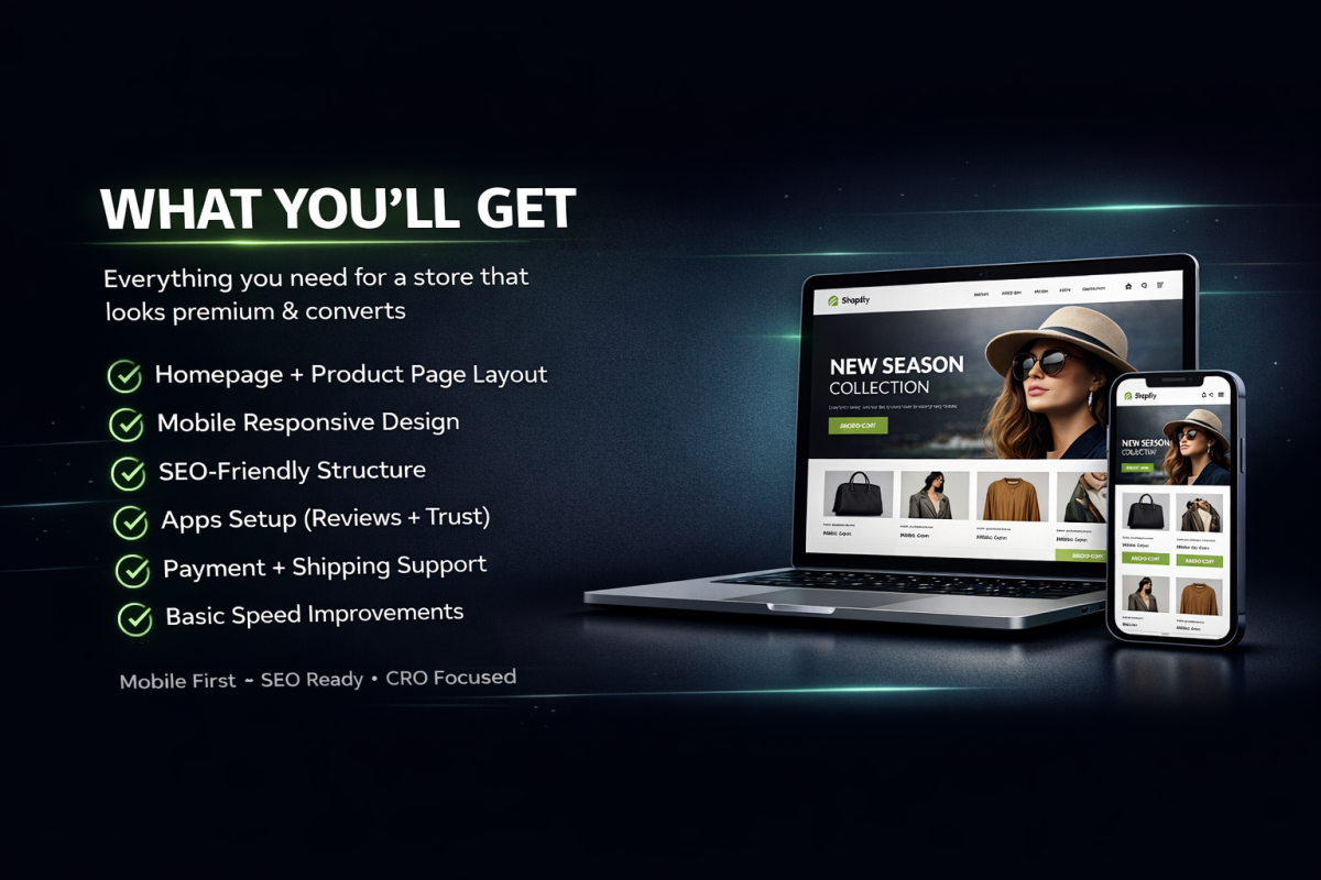 I will build a modern, clean, and high-converting Shopify store for your eCommerce business. My focus is not only on making the store look premium, but also on creating a smooth shopping experience that helps your visitors trust your brand and complete the purchase.