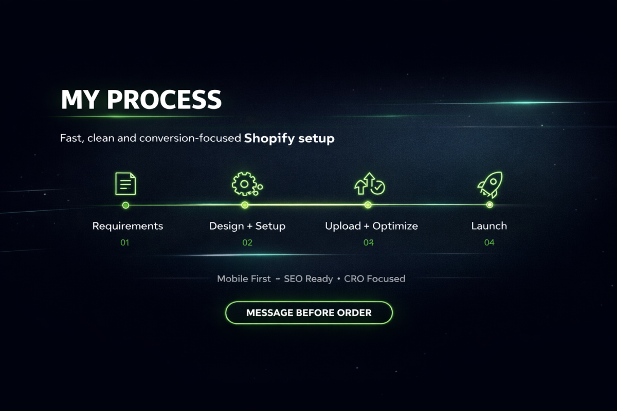 I work with clear communication and I update you during the process so you always know what’s happening. If you want a Shopify store that looks professional and is ready to sell, I can help you build it the right way.