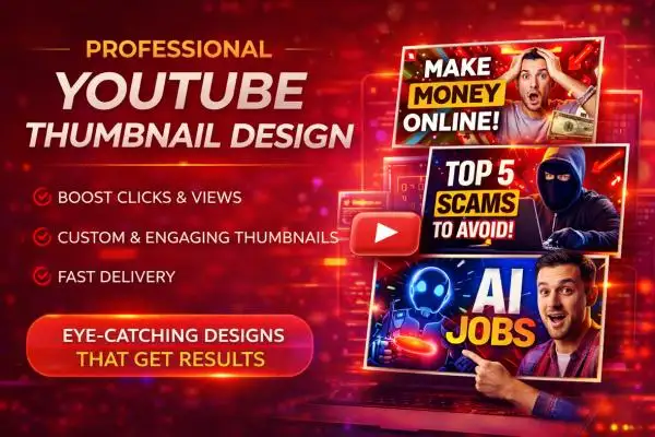 I will create professional, eye-catching, and high-quality YouTube thumbnails that help increase your video click-through rate (CTR) and attract more viewers. A well-designed thumbnail is essential for growing your YouTube channel and making your videos stand out from the competition.