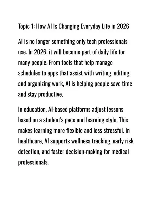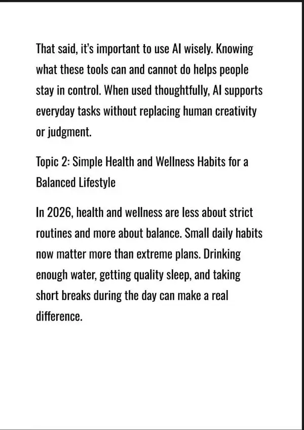 I provide professional blog and article writing services focused on trending and high-interest topics. I specialize in creating content around the practical use of AI, e-learning and online education, health and wellness, lifestyle updates, and other topics shaping 2026. My goal is to deliver content that is clear, engaging, and easy for readers to understand.